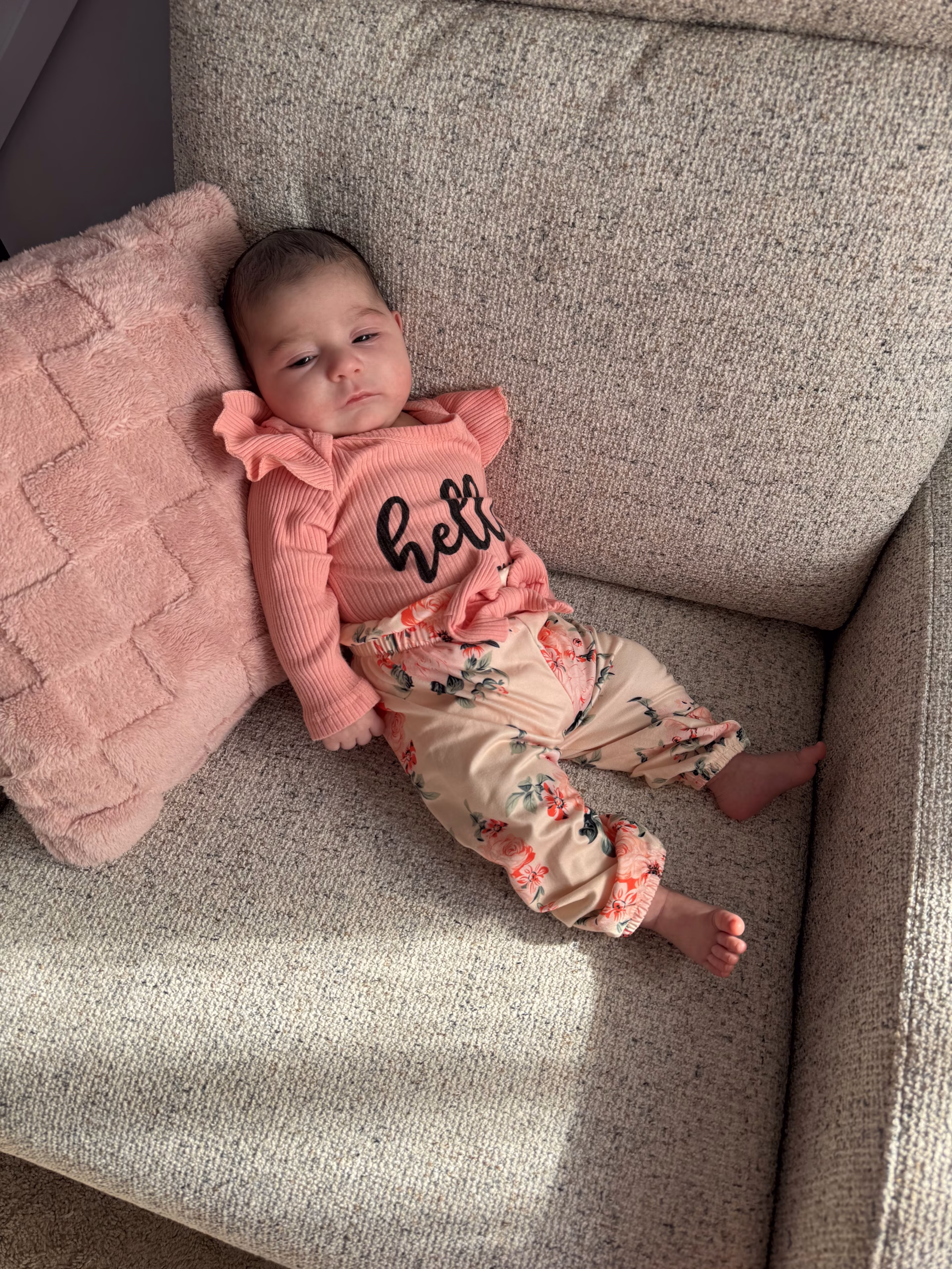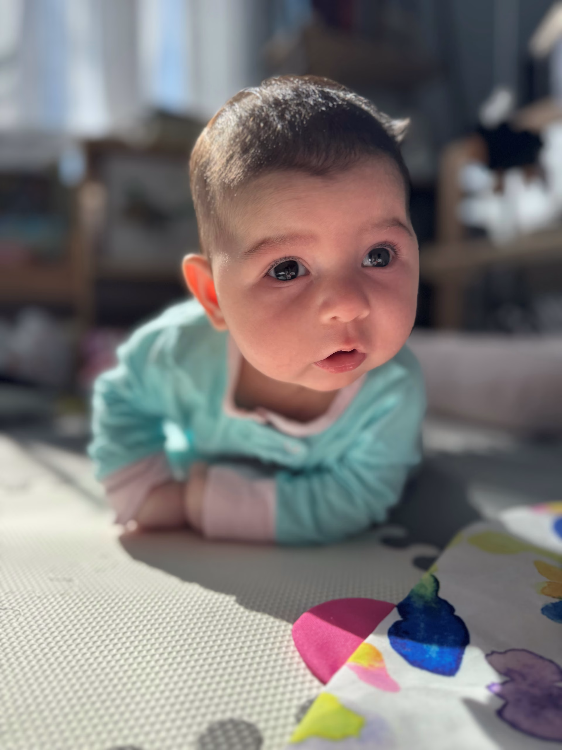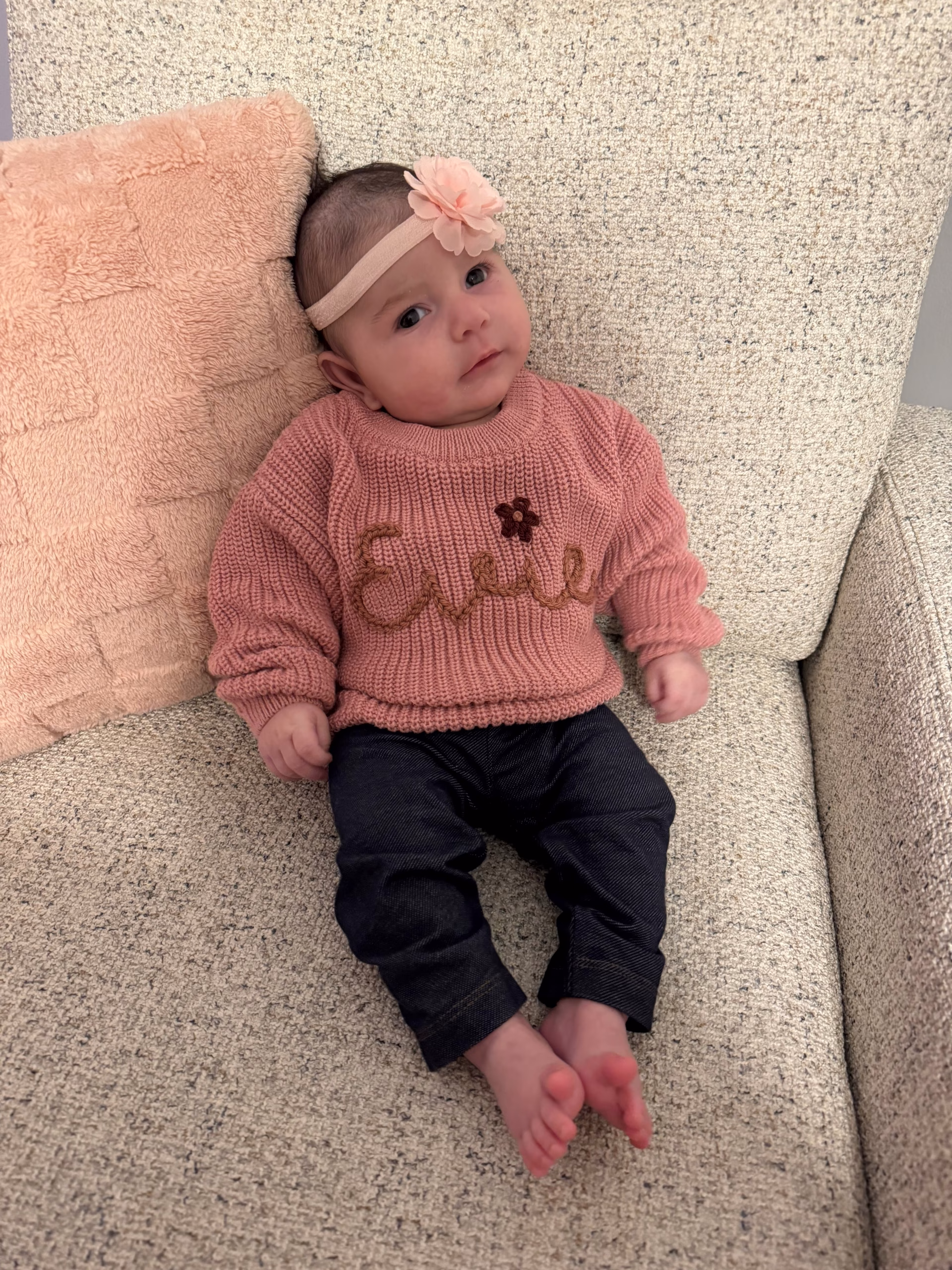 Evelyn was born on 12/13/24 and is a calm, docile baby who rarely cries unless hungry/sleepy and can be calmed by holding her. She has an Indian mother and white Father.