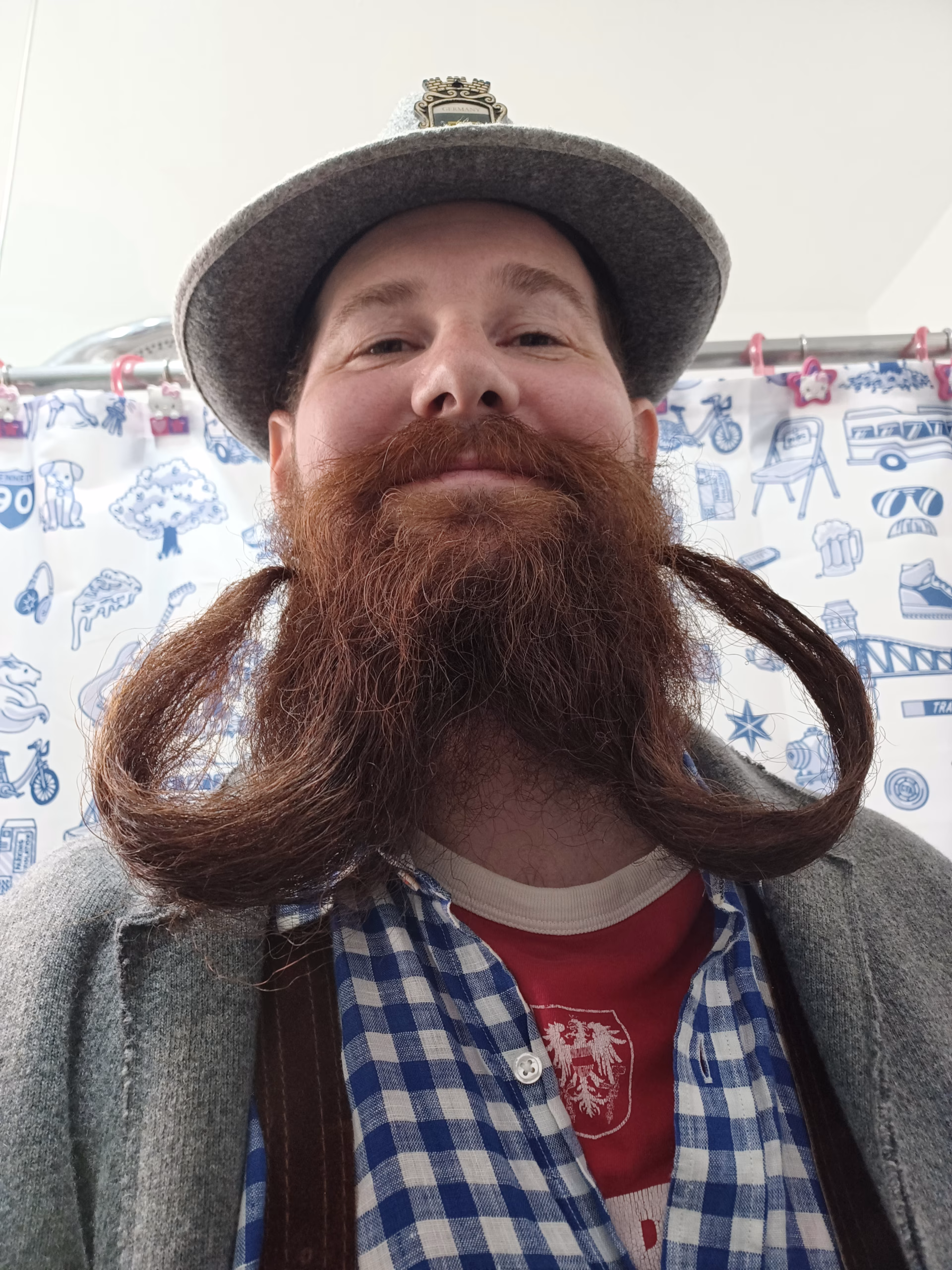 Long hair and long (down to my belly button) beard. Not willing to cut either.