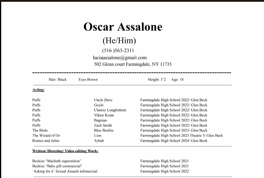 Meet oscar assalone. Based in New York, New York, United States, this professional brings a range of practical skills and experience to each project. Skilled in Acting, Adaptability, Comedy, Communication Skills, Creativity, Directing, Flexibility, Makeup, Multitasking, Organizational Skills, Positive Attitude, Scriptwriting, Writing, oscar assalone has contributed to a variety of roles, meeting project needs and providing consistent results.