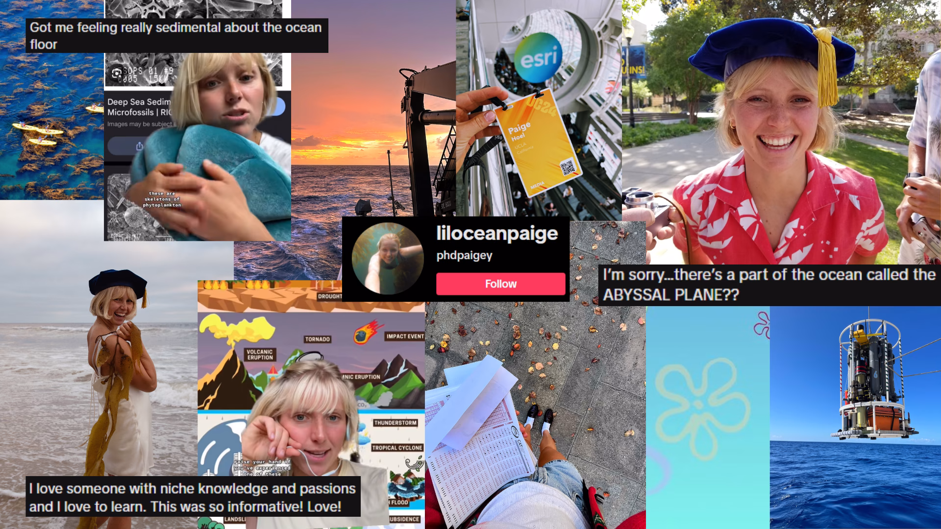 Paige Hoel (aka Ph.D. Paigey or liloceanpaige) is an enthusiastic and skilled science communicator, focusing on climate and ocean science. She holds a Ph.D. in oceanography from UCLA and aims to be the Bill Nye of the ocean. She has an engaged and rapidly growing audience on TikTok, and hopes to bring optimistic and informative science to all!